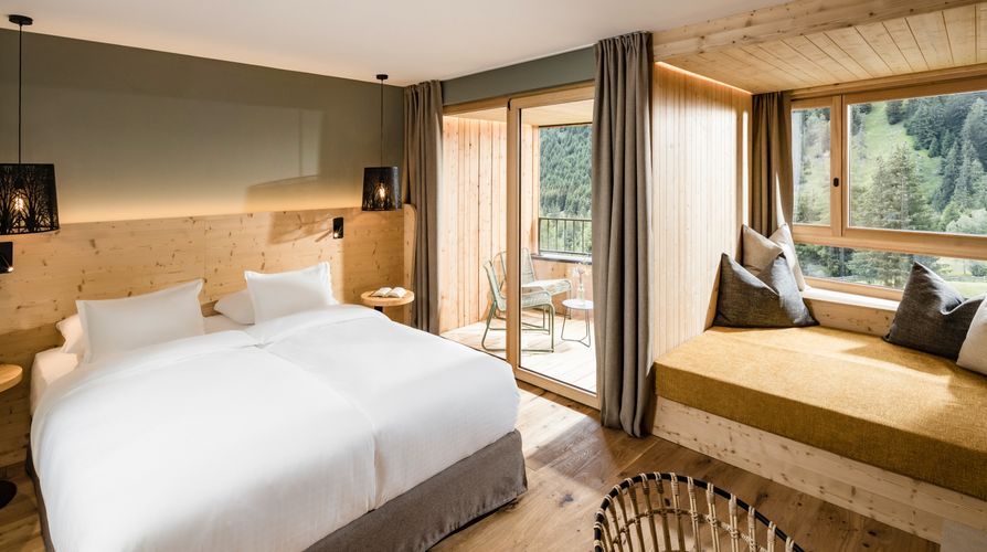 L'hôtel propose 72 chambres douillettes avec vue sur la vallée ou la forêt, certaines disposant d'un balcon. Les chambres sont équipées d'une salle de bain ou d'une douche/WC, d'un sèche-cheveux, d'un téléphone, de la télévision par satellite, d'un coffre-fort et du Wi-Fi. Elles sont aménagées de manière intemporelle et confortable, avec une atmosphère chaleureuse grâce à l'abondance de bois et des éléments de design attrayants.
