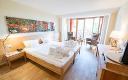 L'hôtel Bio Thermal Falkenhof offre des chambres spacieuses conçues selon les principes de la construction biologique, équipées de meubles en bois massif de haute qualité et de lits sans métal pour promouvoir un climat intérieur sain. Toutes les chambres disposent d'un balcon, tandis que la suite du jardin sur le toit se distingue par une terrasse privée sur le toit. Pour un confort supplémentaire, une sacoche de bain avec peignoir, serviette de plage et serviettes de bain en prêt, ainsi que des chaussons en éponge sont fournis. En tant qu'établissement adapté aux personnes allergiques, certifié selon les normes de l'Association des stations thermales bavaroises, l'hôtel garantit des chambres sans animaux domestiques, dotées de sols en parquet et, sur demande, équipées de housses de protection anti-acariens pour les lits.