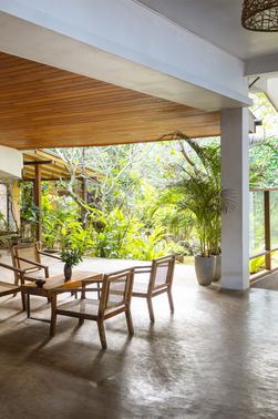 Sur trois étages, le bâtiment s'étend et offre depuis les 12 chambres (env. 34 m²) dotées d'une magnifique façade vitrée, d'un balcon et d'un coin salon, une vue spectaculaire sur les palmiers, la plage et la mer. Les chambres sont très spacieuses, aménagées dans un style moderne non conventionnel et équipées de grandes salles de bains lumineuses - un confort que l'on apprécie pendant une cure Ayurveda. Les équipements incluent également douche/WC, sèche-cheveux, ventilateur, climatisation (en supplément), téléphone, Wi-Fi, coffre-fort, set de thé et moustiquaire. Les chambres simples sont des chambres doubles pour une personne.