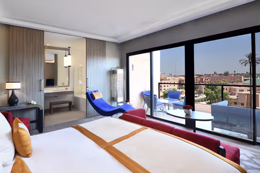 L'hôtel dispose de 503 chambres et suites, toutes ornées de touches marocaines et équipées d'un balcon, d'une baignoire ou d'une douche à effet pluie.