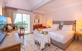 Les suites élégantes, qui s'ouvrent sur la piscine ou la mer, disposent d'un salon séparé, idéal pour des moments de calme ou de divertissement. Le service en chambre disponible 24h/24 complète l'offre.